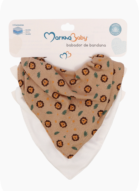 O Kit Bandana 2 Peças Markha Baby é perfeito para manter o bebê sequinho, confortável e estiloso em qualquer momento do dia. Produzidas em suedine penteado 100% algodão, as bandanas possuem 3 camadas, incluindo uma camada impermeável que impede que babinhas e saliva passem para a roupa.