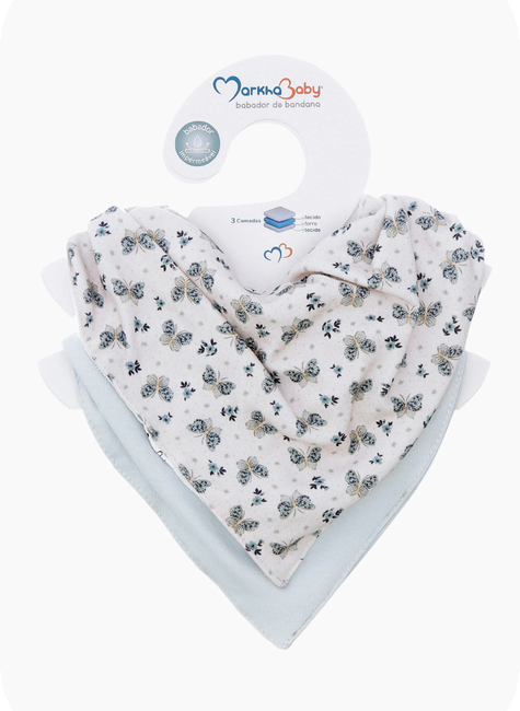 O Kit Bandana 2 Peças Markha Baby é perfeito para manter o bebê sequinho, confortável e estiloso em qualquer momento do dia. Produzidas em suedine penteado 100% algodão, as bandanas possuem 3 camadas, incluindo uma camada impermeável que impede que babinhas e saliva passem para a roupa.
