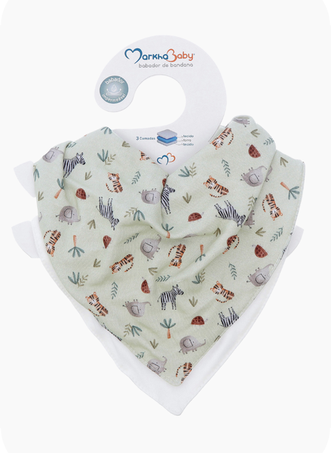 O Kit Bandana 2 Peças Markha Baby é perfeito para manter o bebê sequinho, confortável e estiloso em qualquer momento do dia. Produzidas em suedine penteado 100% algodão, as bandanas possuem 3 camadas, incluindo uma camada impermeável que impede que babinhas e saliva passem para a roupa.