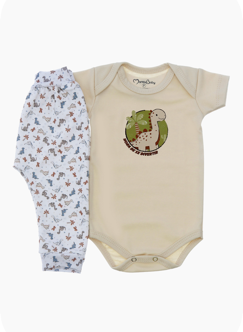 O body possui gola transpassada (envelope), facilitando a troca sem desconfortos, além de etiqueta confort, que não irrita a pele. O mijão modelo saruel garante liberdade de movimento, vestindo suavemente sem apertar a barriga.
