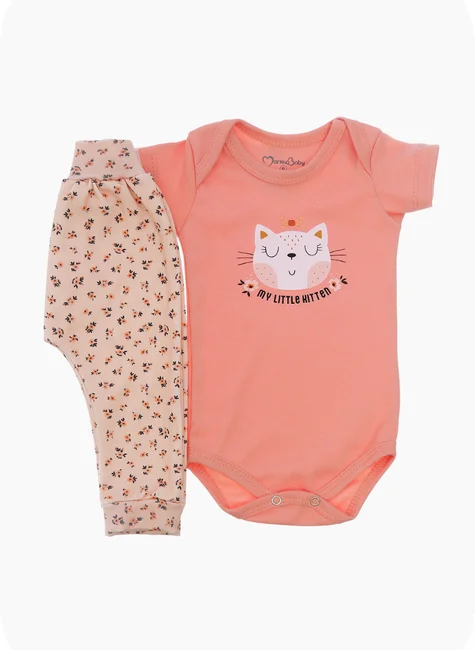 O body possui gola transpassada (envelope), facilitando a troca sem desconfortos, além de etiqueta confort, que não irrita a pele. O mijão modelo saruel garante liberdade de movimento, vestindo suavemente sem apertar a barriga.