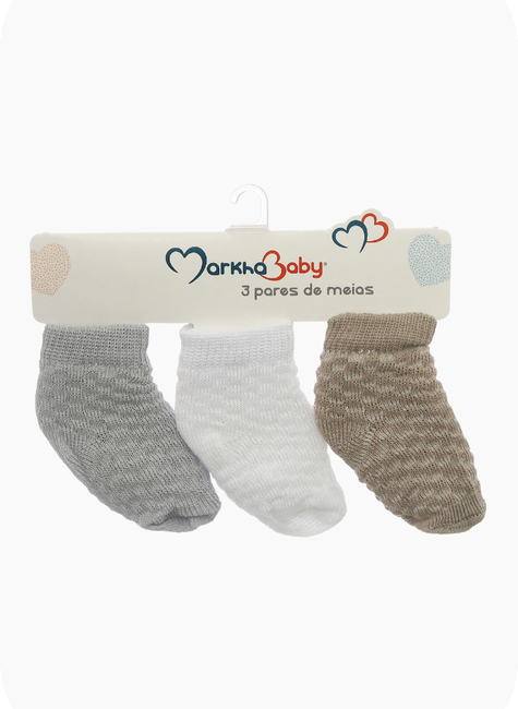 O Kit Meia 3 Peças Markha Baby traz conforto, praticidade e proteção para o bebê em todas as ocasiões. As meias são macias, elásticas na medida certa e não apertam, garantindo segurança e aconchego.