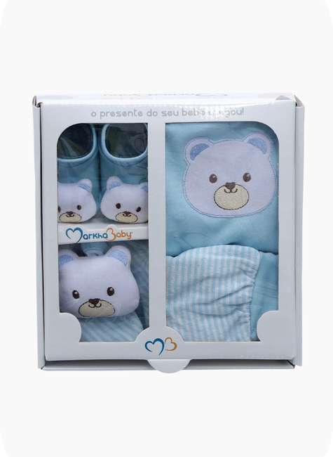O Kit Presente Mini Markha Baby reúne 4 peças essenciais e encantadoras para presentear com carinho e bom gosto. Cada item foi pensado para proporcionar conforto, delicadeza e praticidade ao bebê e aos pais.
