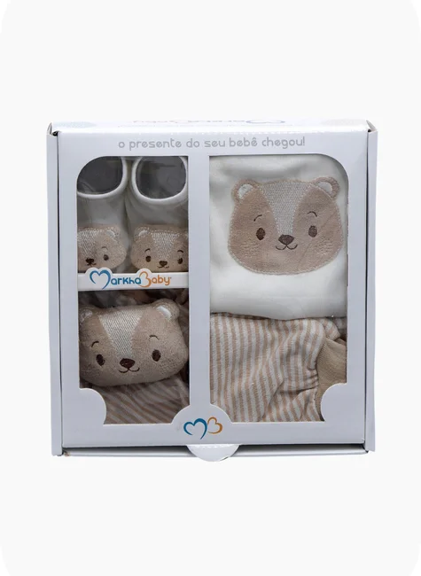 O Kit Presente Mini Markha Baby reúne 4 peças essenciais e encantadoras para presentear com carinho e bom gosto. Cada item foi pensado para proporcionar conforto, delicadeza e praticidade ao bebê e aos pais.