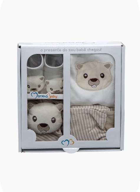 O Kit Presente Mini Markha Baby reúne 4 peças essenciais e encantadoras para presentear com carinho e bom gosto. Cada item foi pensado para proporcionar conforto, delicadeza e praticidade ao bebê e aos pais.