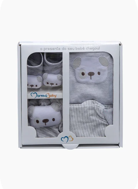 O Kit Presente Mini Markha Baby reúne 4 peças essenciais e encantadoras para presentear com carinho e bom gosto. Cada item foi pensado para proporcionar conforto, delicadeza e praticidade ao bebê e aos pais.