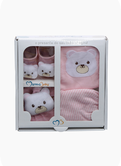 O Kit Presente Mini Markha Baby reúne 4 peças essenciais e encantadoras para presentear com carinho e bom gosto. Cada item foi pensado para proporcionar conforto, delicadeza e praticidade ao bebê e aos pais.