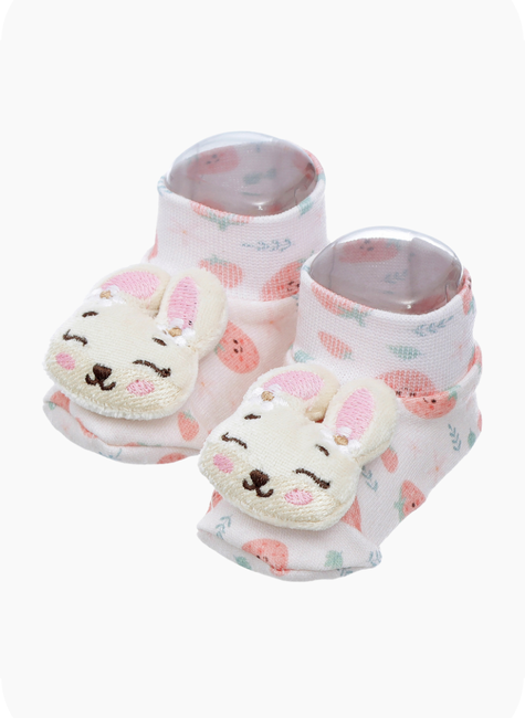 Seu design lúdico, inspirado em bichinhos fofos e interativos, estimula a curiosidade e os sentidos do bebê, tornando a pantufa não apenas um item funcional, mas também uma peça encantadora para complementar qualquer look infantil.