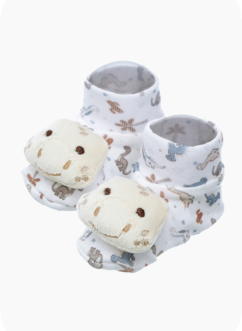 Seu design lúdico, inspirado em bichinhos fofos e interativos, estimula a curiosidade e os sentidos do bebê, tornando a pantufa não apenas um item funcional, mas também uma peça encantadora para complementar qualquer look infantil.