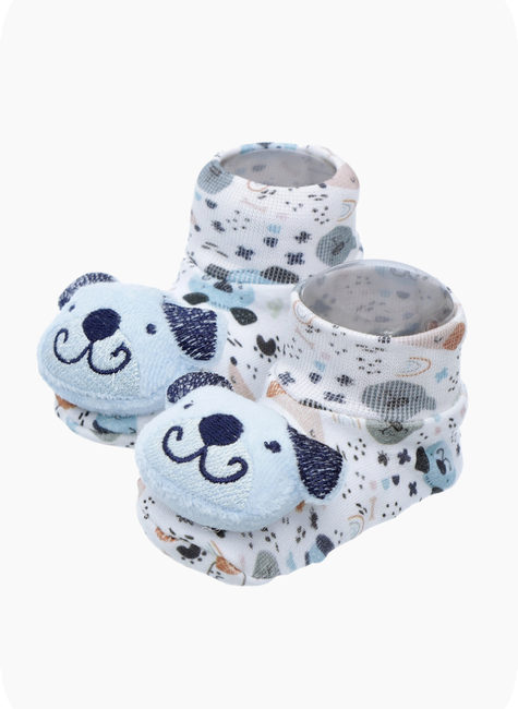 Seu design lúdico, inspirado em bichinhos fofos e interativos, estimula a curiosidade e os sentidos do bebê, tornando a pantufa não apenas um item funcional, mas também uma peça encantadora para complementar qualquer look infantil.